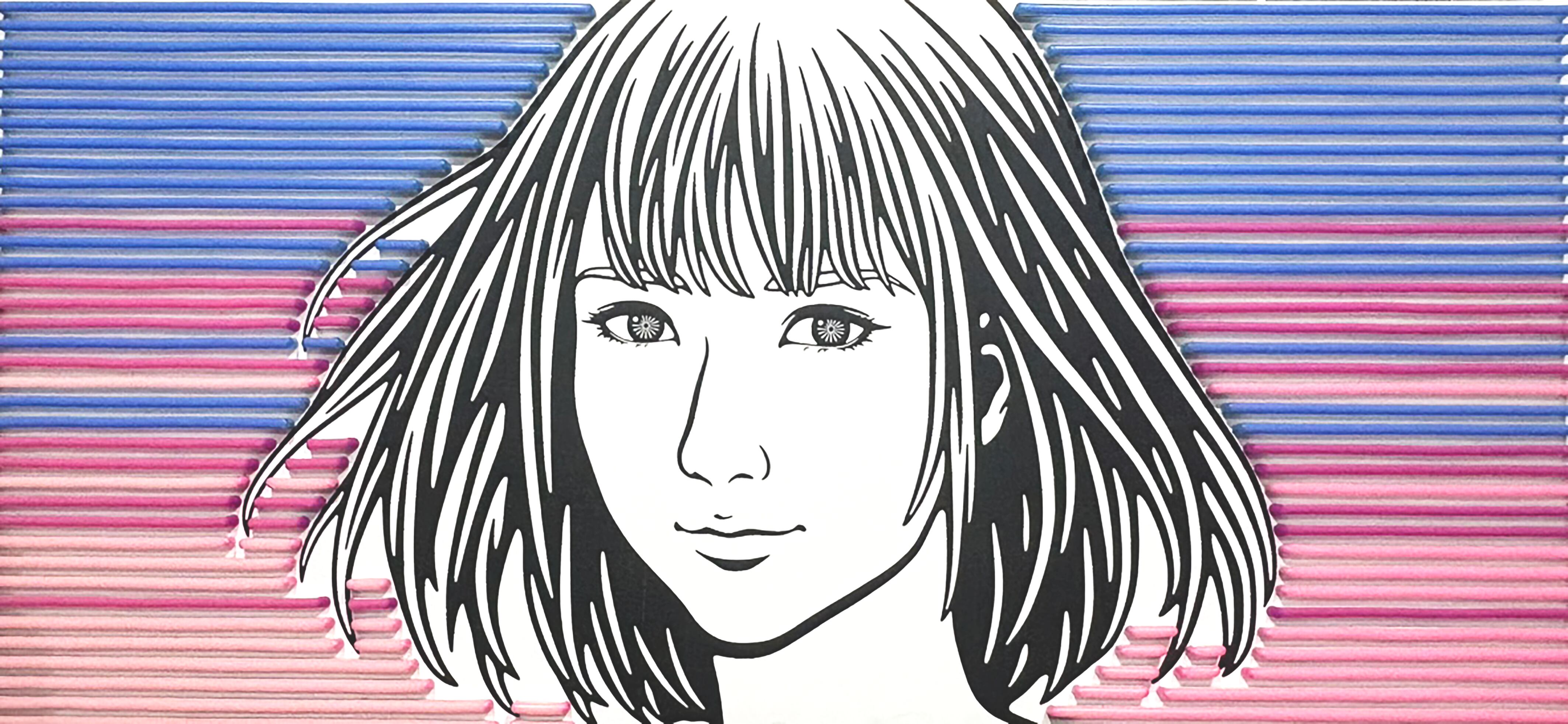 グラフィカルに描かれた女性像と、反復するネオンライン。