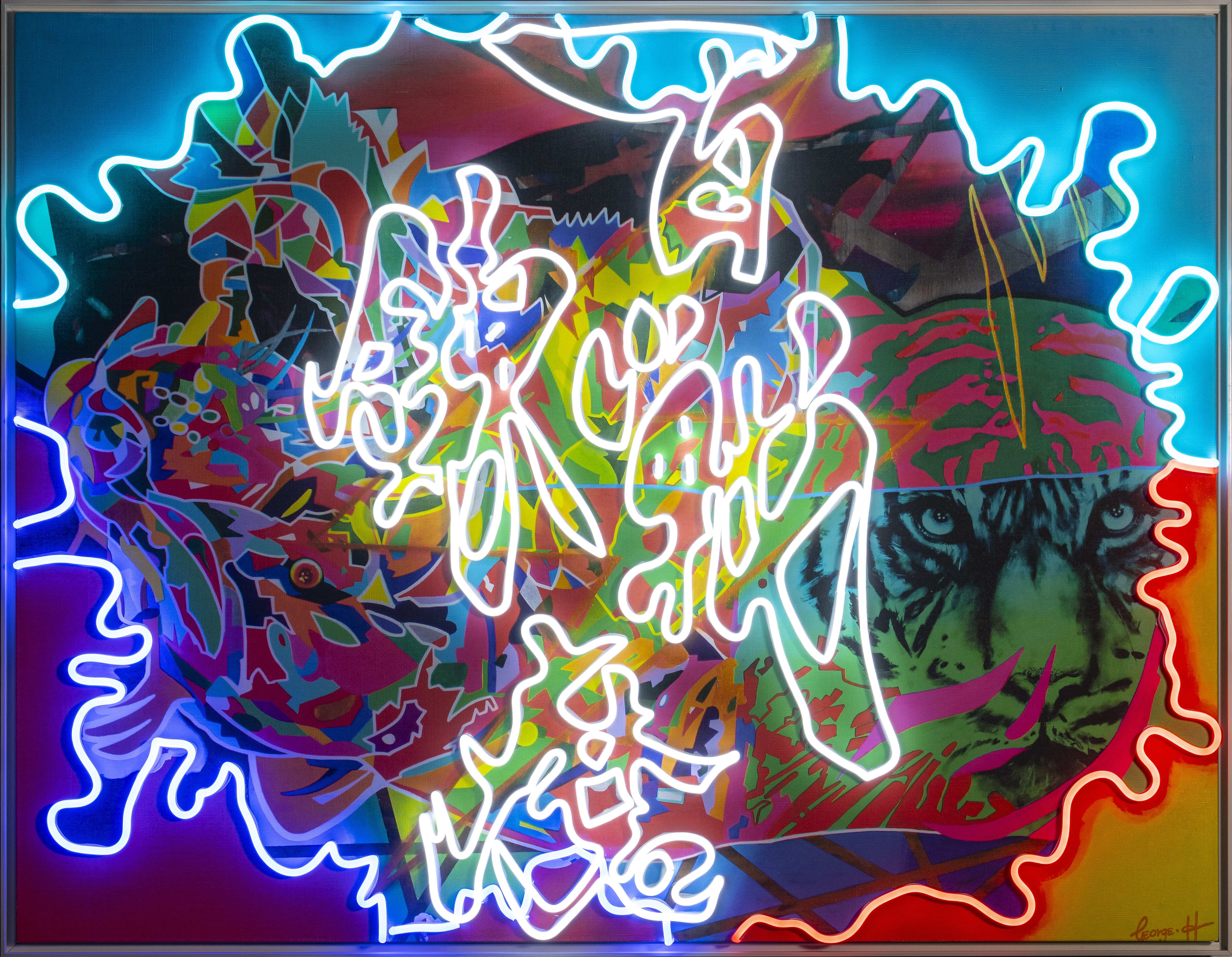 幾重にも重なる色彩と、混沌の中に走るネオンの線。
